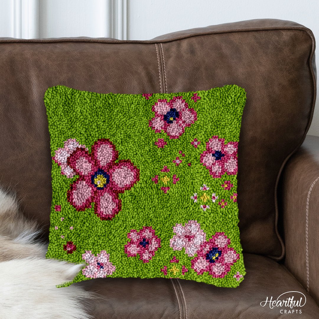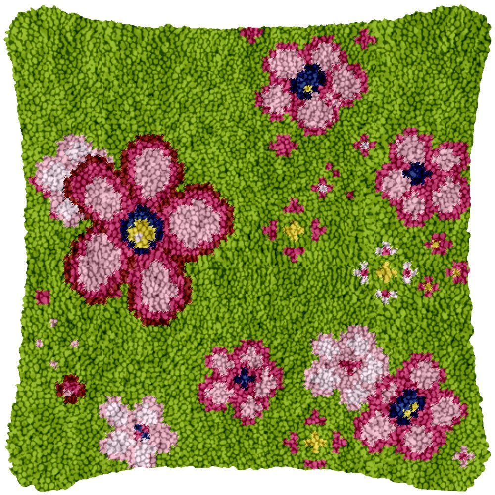 Field of Pink Flowers - Latch Hook Pillow Kit