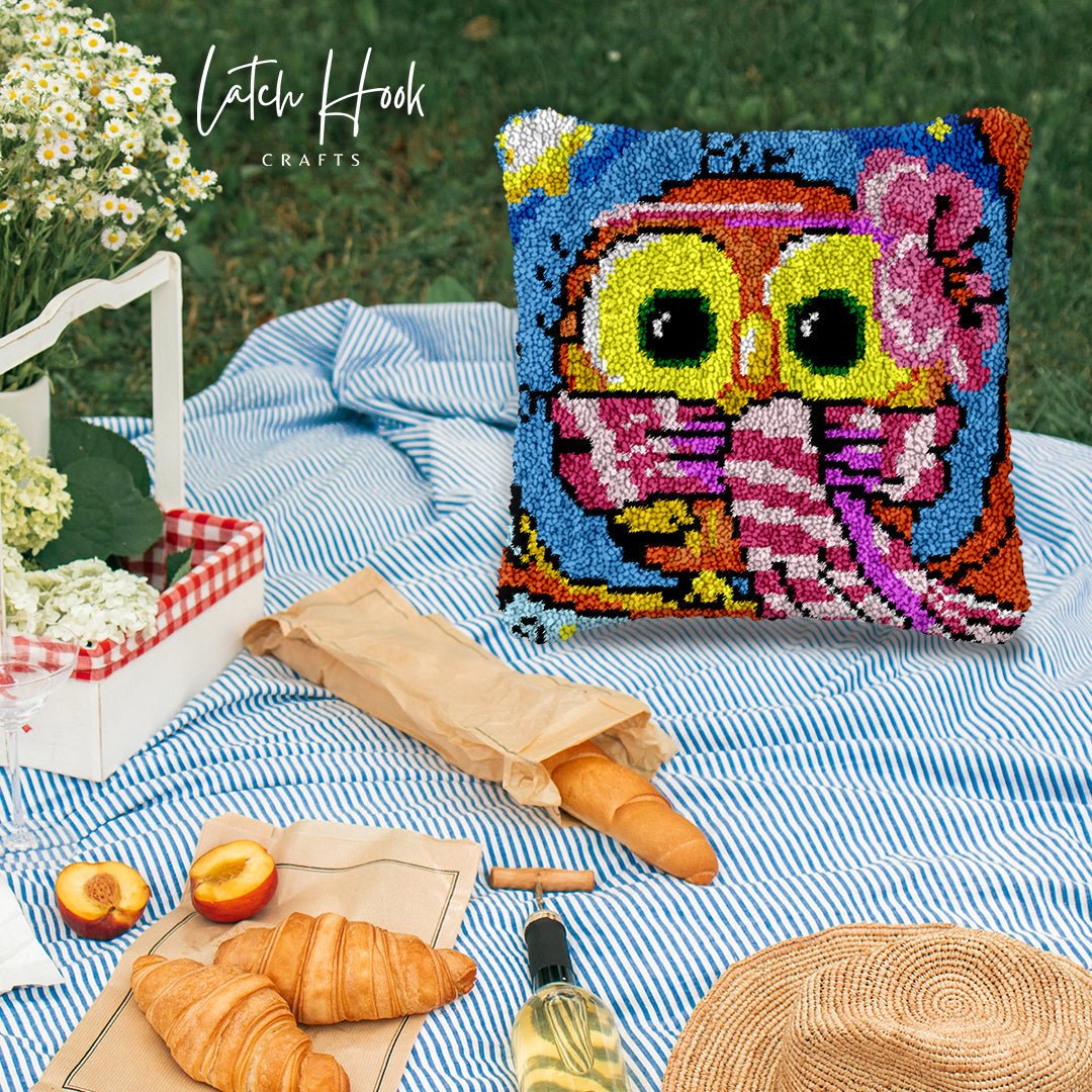 Add colorful friends from the animal kingdom and be more chirpy everyday. This simple latch hook pillowcase is a great addition for any home.