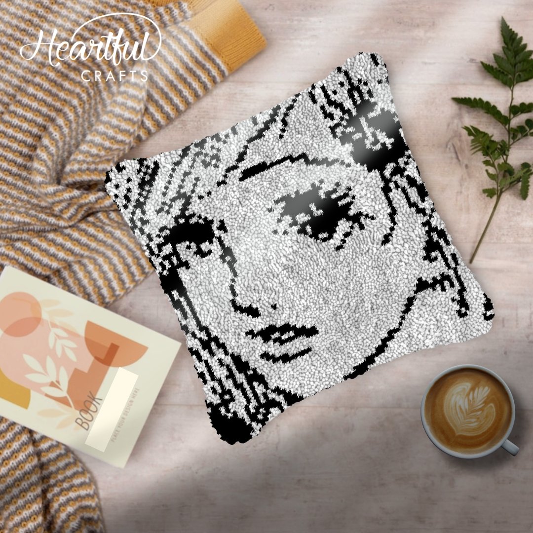 This beautiful portrait of a lady will surely add elegance when placed on your home. This simple latch hook throw pillow cover is a great addition for any home.