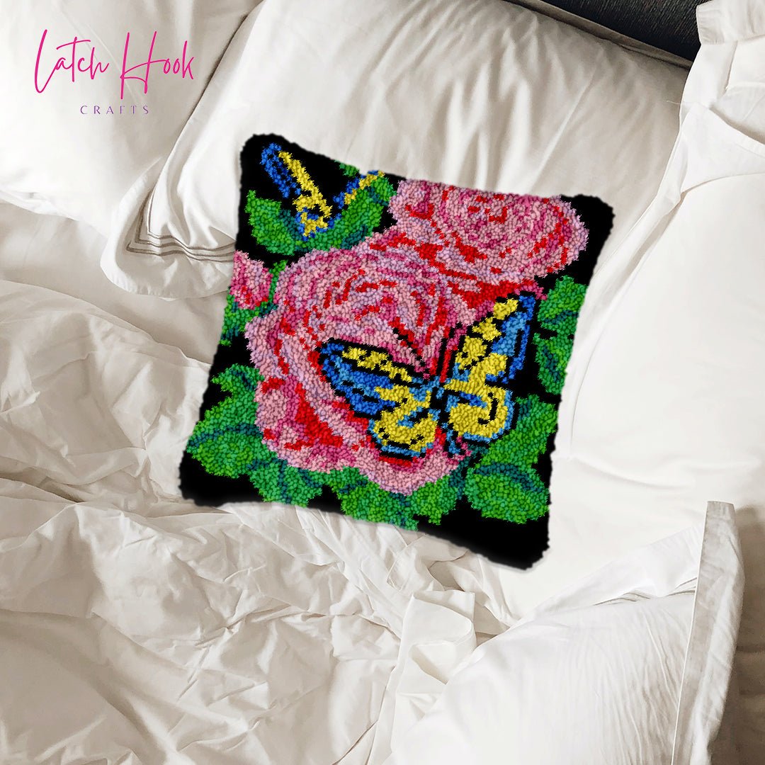 Lovely Pink Blossoms - Latch Hook Pillow Kit