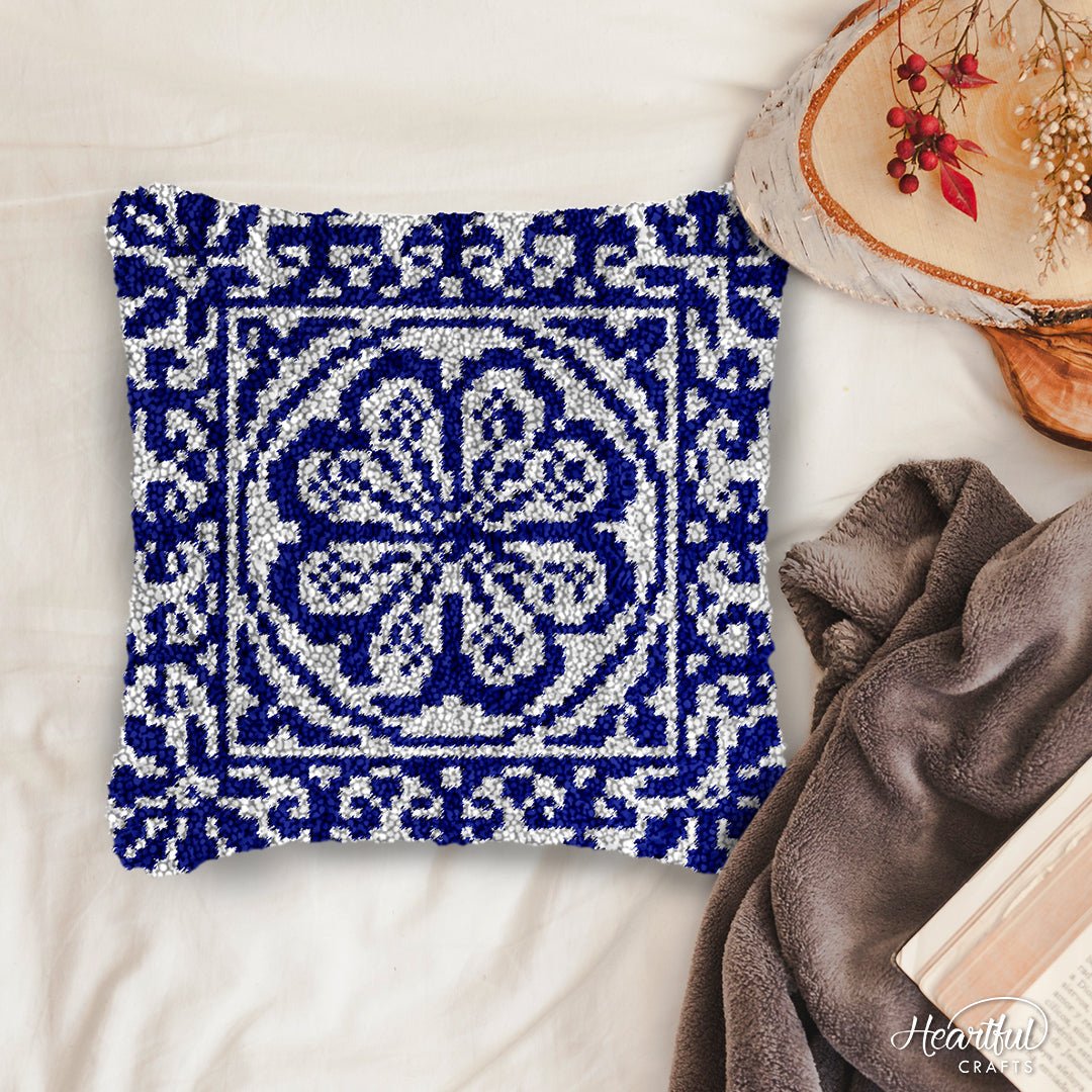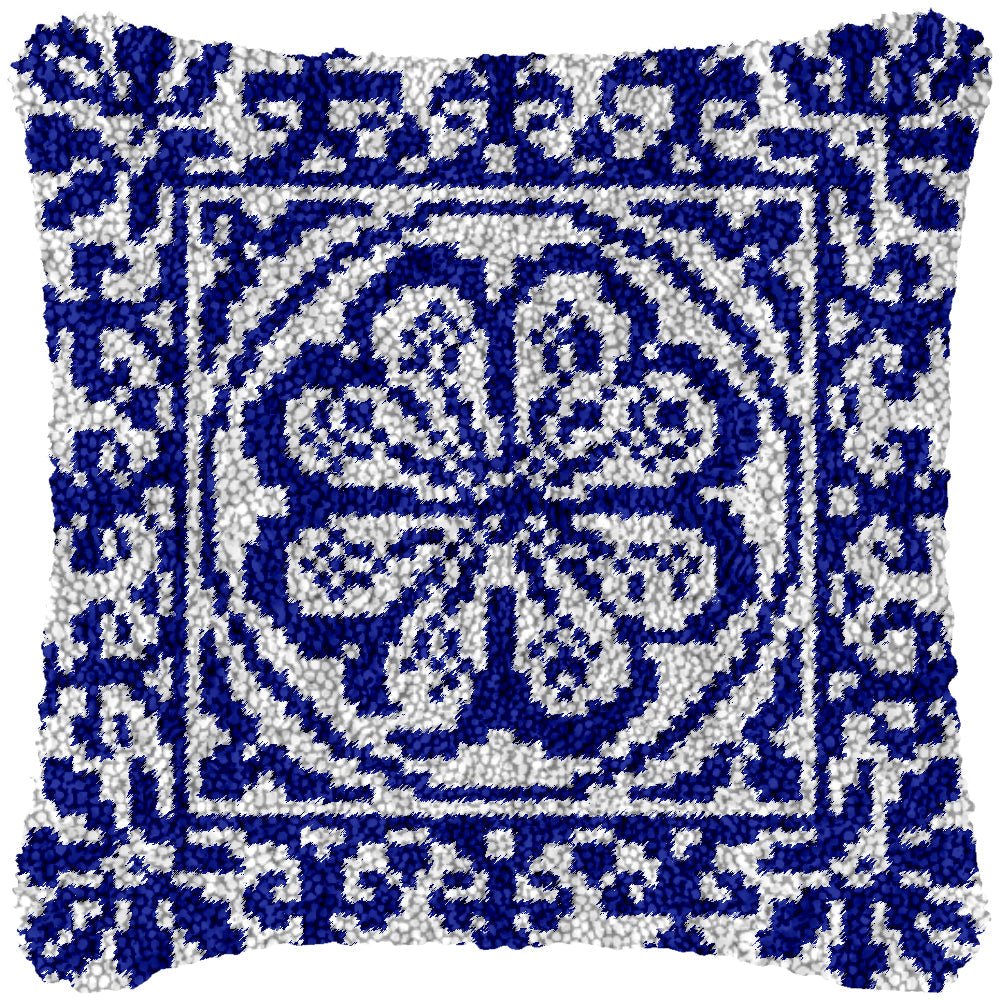 Floral Blue - Latch Hook Pillow Kit