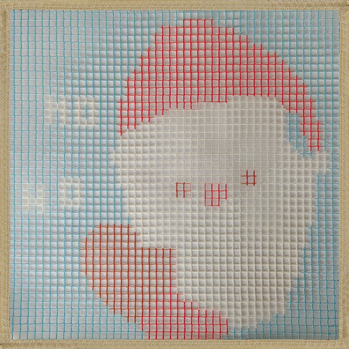 If you've threaded a piece of yarn through the wrong colored grid, no need to stress! Gently tug on one of the loops done by the hook and the yarn will undo itself, ready to be put in the right place.