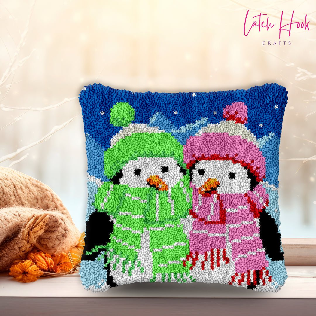 Snuggle Up Penguins - Latch Hook Pillow Kit